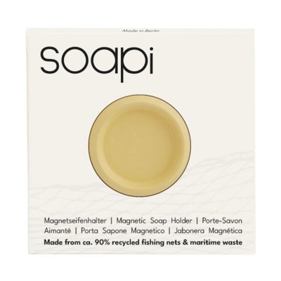 Soapi er en lille tysk virksomhed, der er sat i verden for at minimere plastaffaldet i dit badeværelse. Med en Soapi magnetisk sæbeholder kan du nemt fastgøre din shampoo og sæbebarer på væggen eller i dit brusebad. Sæbemagneterne er produceret i Tyskland af genbrugt plastaffald fra havet, der er renset og forarbejdet i Danmark. På den måde ligger fiskenettene ikke og forurener havene længere. I stedet finder fiskenettene et nyt og langsigtet formål i dit badeværelse. Det synes vi er rigtig smart.