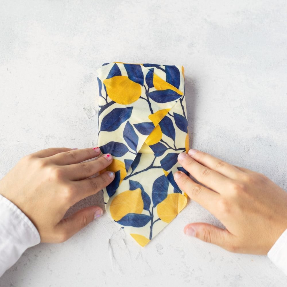 - Bivoks lærredet foldes om maden eller skålen.