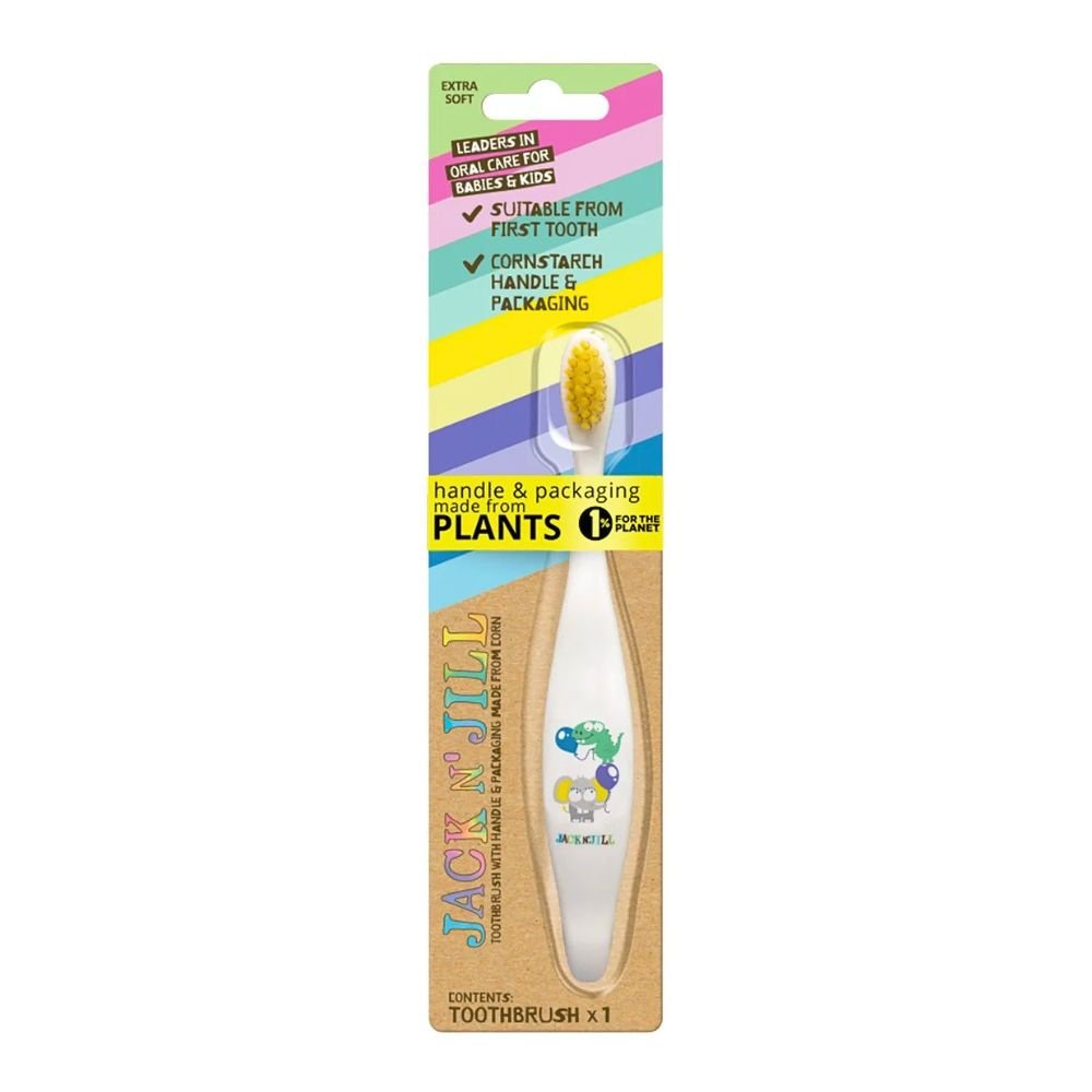 Også emballagen på Jack N' Jill børnetandbørste er bionedbrydelig og kan med fordel smides i komposten. Den er nemlig lavet af genanvendt pap og majsstivelse.