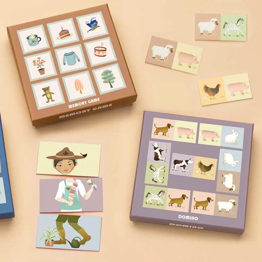Spillet indeholder 28 par (56 brikker) og kan spilles af 2-6 spillere.